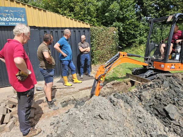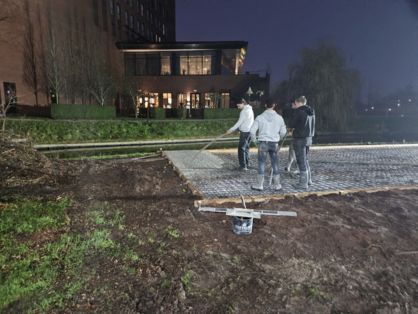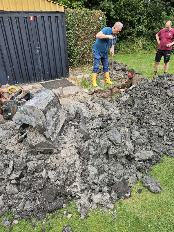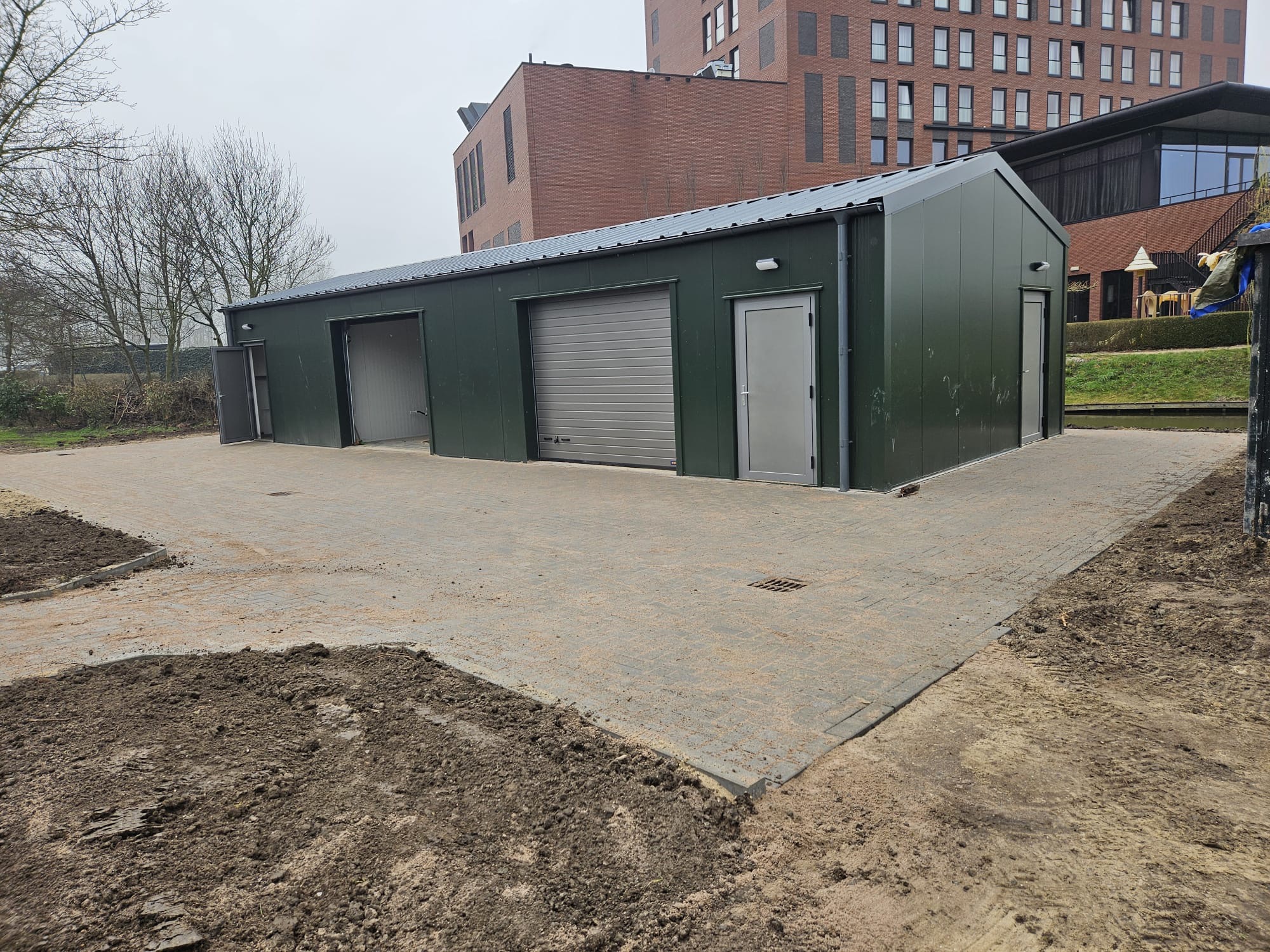 In onderstaande fotocollage een overzicht van de transitie van het oude "containerpark" naar de nieuwe loods. Naast het bouwen/inrichten van de loods is er volop graafwerk verricht en zijn er ook meteen "buizen" gelegd om stroom-, data- en geluidskabels doorheen te trekken naar de nieuwe loods.