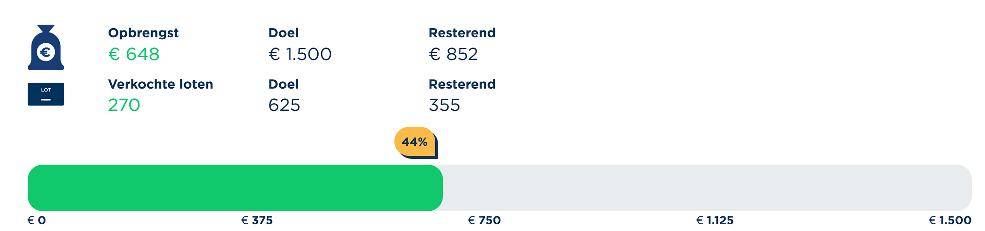We zitten op 44% van het streefdoel, dus we gaan de goede kant op. Let wel: als je in de tweede set verslapt kom je slecht weer op niveau, dus we blijven het gas erop houden.